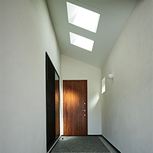 旗竿敷地に建つ、光あふれる土間と三角天井の家